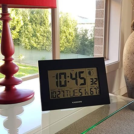 - Wall Clock with High Contrast Display: Kadams LED wall clock makes time management a breeze. Its large LCD screen has wide viewing angles and displays text big and bold to provide maximum readability from across the room. The smart clock is perfect for use as a table clock and wall hanging clock in spaces ranging from desk, bedside table, office table, WFH set up, walls, and more